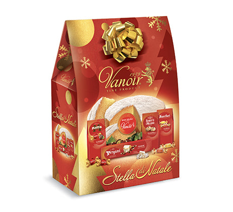 Gran Delizia classica Vanoir g 400, Torrone alla mandorla Vergani g 75, Boules ripieno nocciola Motta g 85, Canestrelli Baratti & Milano g 80, Morbide gelées alla frutta Sperlari g 100