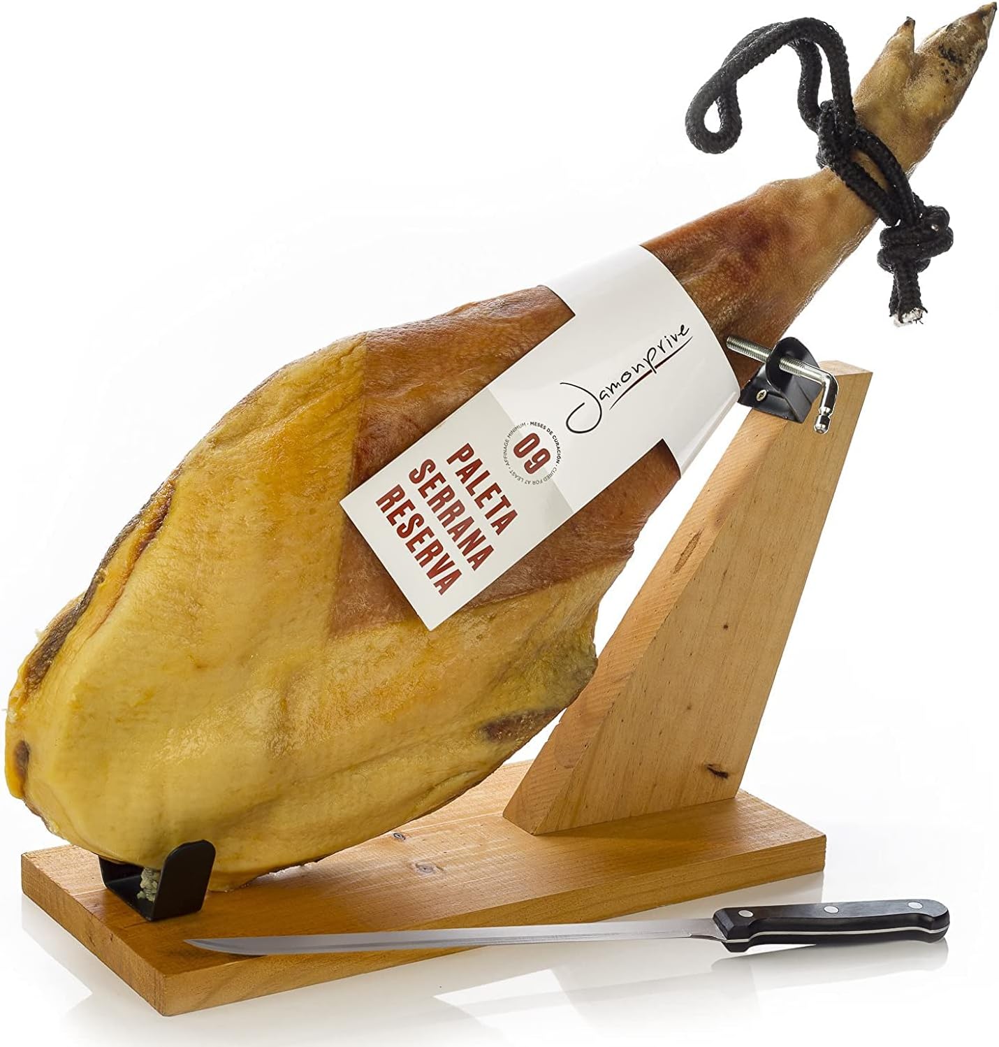 Il Jamon Paleta Serrana Reserva 4,5-5kg è una prelibatezza di carne di maiale che si contraddistingue per la sua morbidezza e sapore intenso. Prodotto in Spagna, questo jamon viene stagionato in modo tradizionale per garantire una qualità superiore. Un'ottima scelta per gli amanti del prosciutto di alta qualità.